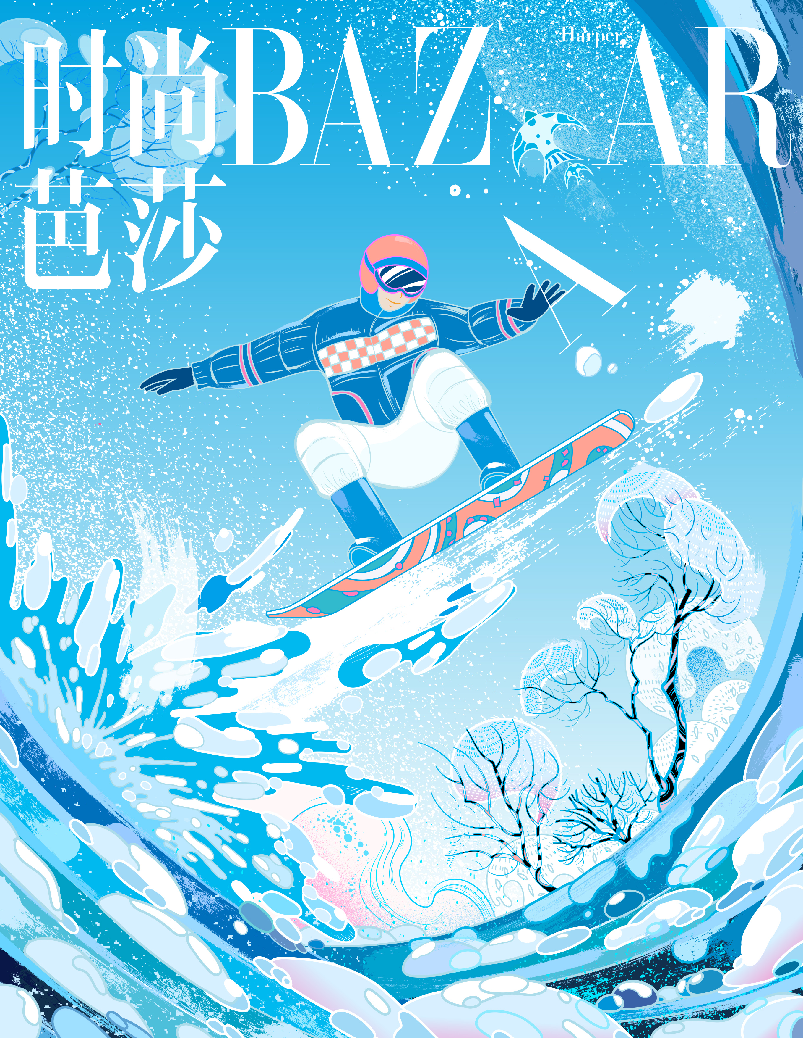 Through the cover design of Harper’s Bazaar, it showcases the snowboarding event of the Winter Olympics.Reflect Beijing culture.